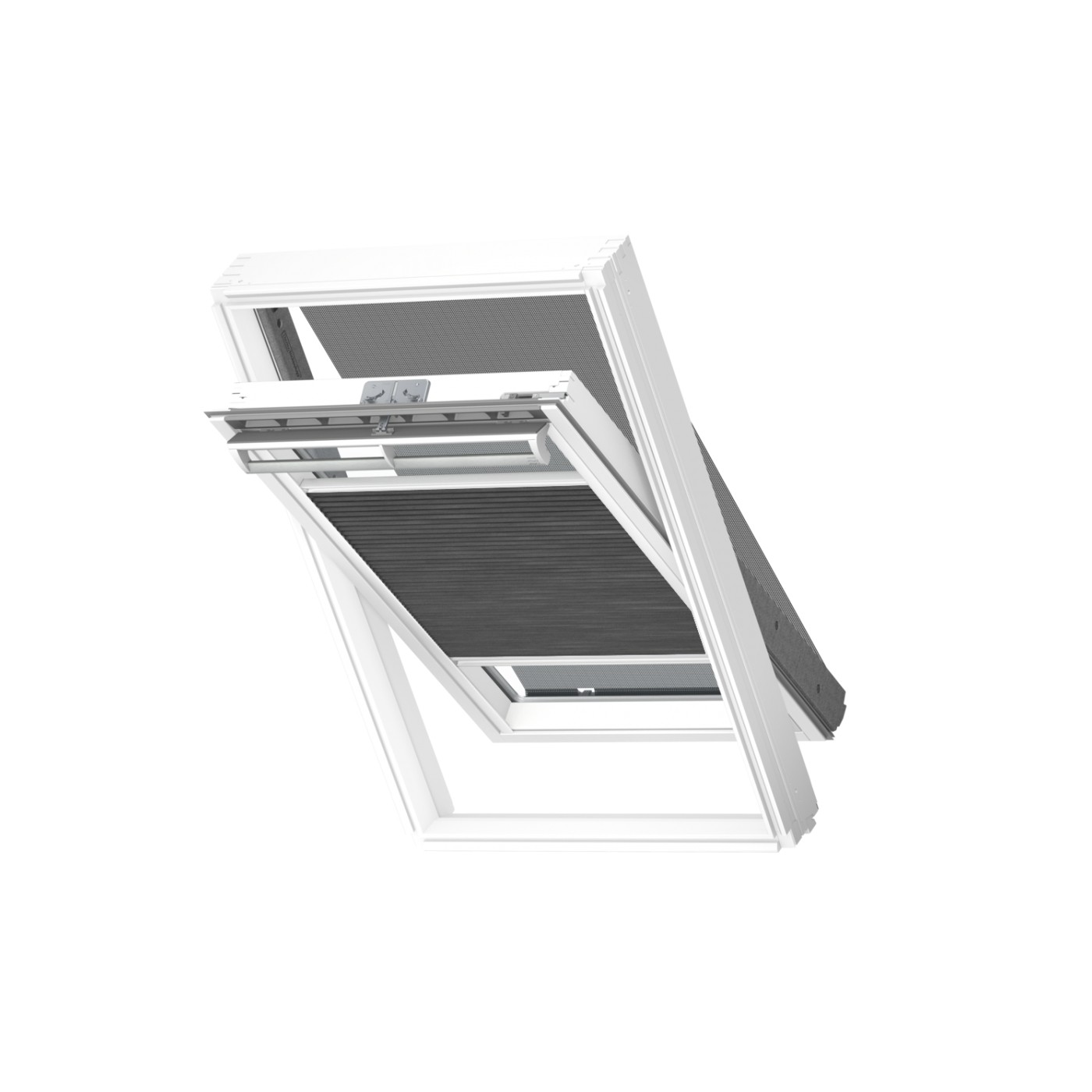 Két árnyékoló egy csomagban: Az egyik egy fényzáró pliszé, amely a tetőtéri ablak tetéjéről, és aljáról is szabadon állítható, így pontosan mindig a megfelelő mennyiségű fényt fogja beengedni. A másik árnyékoló hővédő roló, amely megóvja a tetőteret a nap melegítő hatásától, így a szoba akár 5 fokkal hűvösebb marad. Az áttetsző háló megőrzi a kilátást.